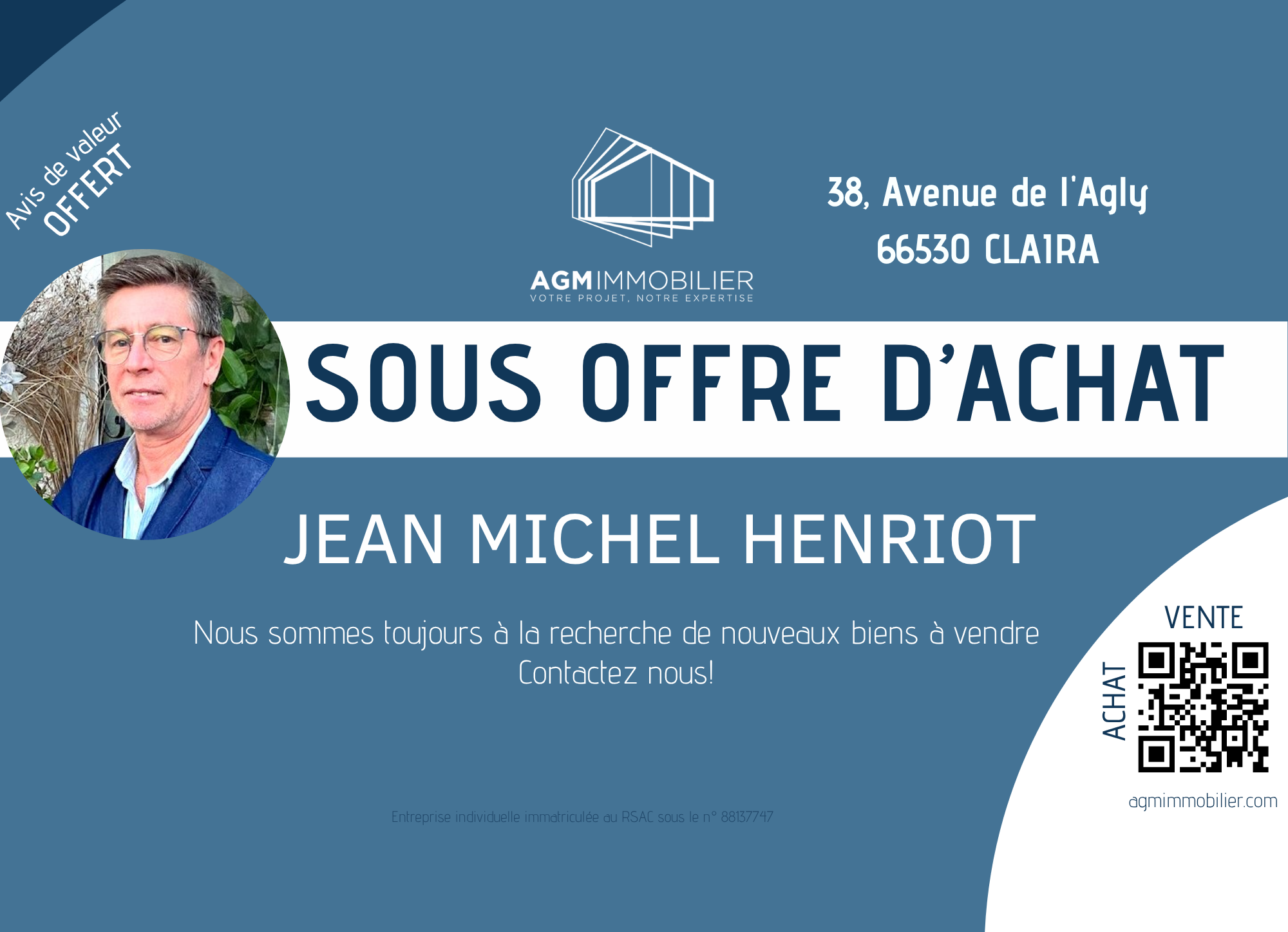 Conformément à la loi « informatique et libertés », vous disposez des droits d’accès, de rectification, d’effacement, d’opposition, de limitation et de portabilité de vos données. Vous pouvez retirer votre consentement à tout moment en contactant directement l’Agence / Le Réseau.