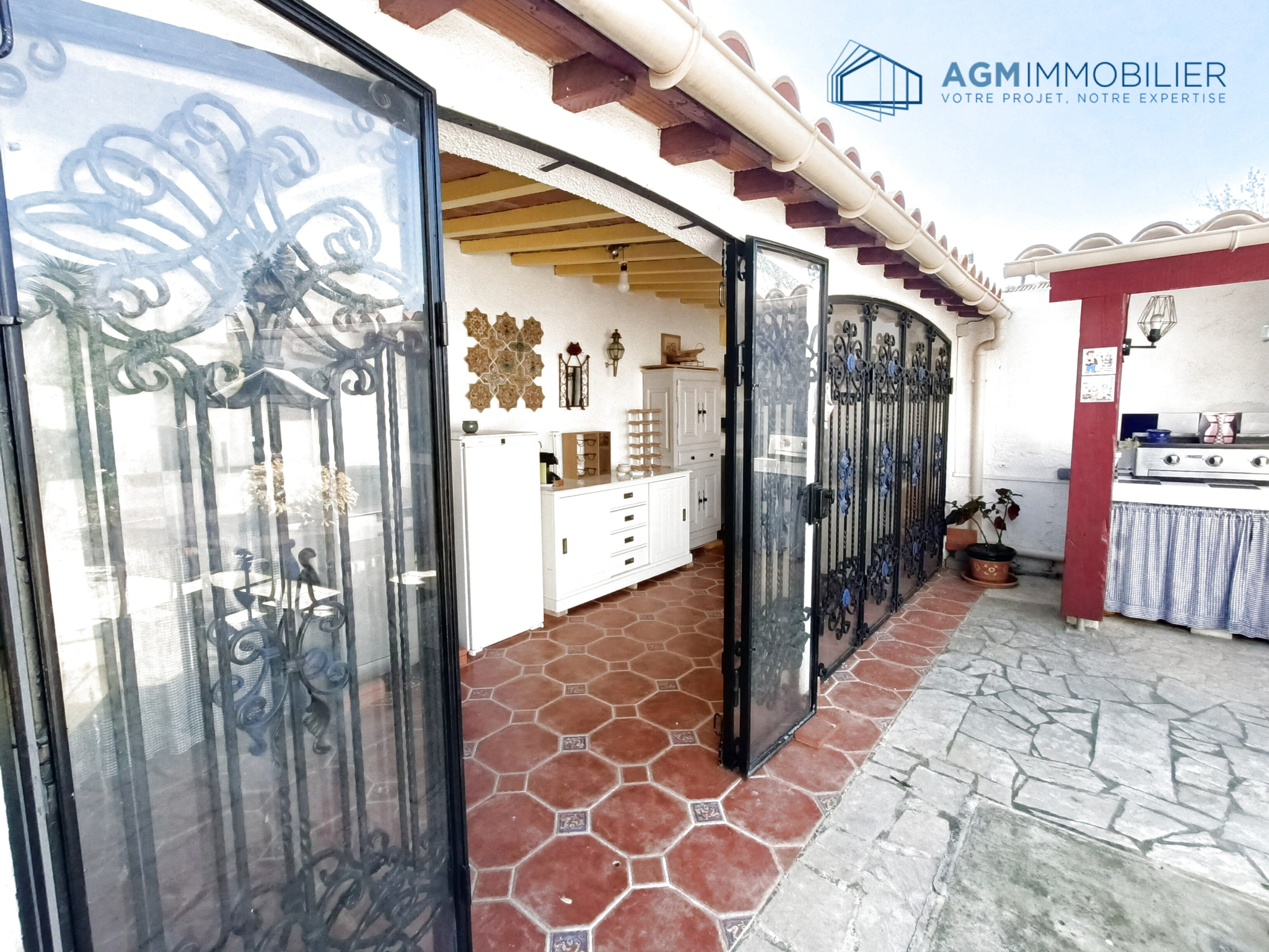 SECTEUR CALME ET RECHERCHE, PROCHE DES COMMODITES,ECOLES, COLLEGE .BELLE VILLA DE STYLE CATALAN DE CONSTUCTION TRADITIONNELLE EN 4 FACES S.H.132m² SURFACE TOTALE UTILE 180m² Grande entrée ,Salon séjour, cuisine ouverte équipée, 3 chambres dont une avec espace dressing, salle de bains, toilette séparé. A l'étage : 1 chambre avec toilette et lavabo,un bureau 9 m² situé dans la Tour peut faire office de chambre ou espace détente. L'étage dispose d'un grenier de 33m² utiles de rangement. Les annexes: Grand garage suivit d'un atelier,puis d'une cuisine d'été équipée ornée de portes en fer forgé vitrées. Un extérieur remarquablement , bien entretenu,fleuri et arboré, terrasses exposées Sud, Panneaux photovoltaïques .Pour les visites contacter votre conseiller ALAIN GIMENO (E.I) 06 84 90 94 88 enregistré au RSAC de Perpignan sous le n°835196155. Les informations sur les risques auxquels ce bien est exposé sont disponibles sur le site :www.géorisques.gouv.fr Les informations sur les risques auxquels ce bien est exposé sont disponibles sur le site Géorisques